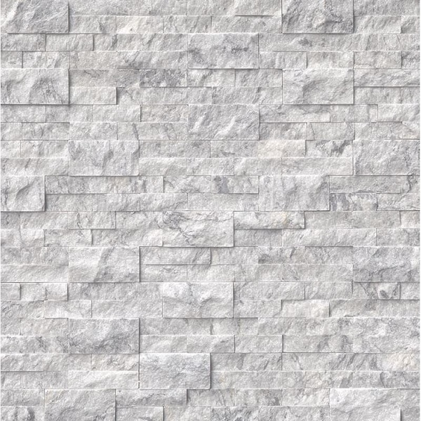 Arabescato Carara 6 in. x 18 in. Splitface Stacked Stone panel is crafted from fine marble. Its gorgeous dusty grey hues lend timeless beauty to any interior or exterior project while its randomly set stones add depth and interest. Use this marble stacked stone panel to create sophisticated accent walls, backsplashes, fireplace surrounds, or to clad architectural features such as retaining walls. MSI’s exclusive Interlocking Z Feature ensures the panels fit together easily and no grout required. Achieving a seamless installation has never been easier. Corner pieces are available to give your project a finished look.