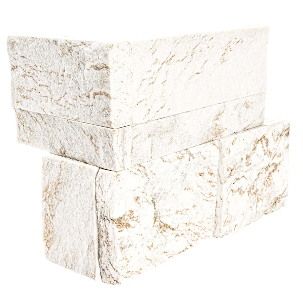 Royal White Splitface Ledger Corner 9'' x 18'' Quartzite Wall Tile, 4PK