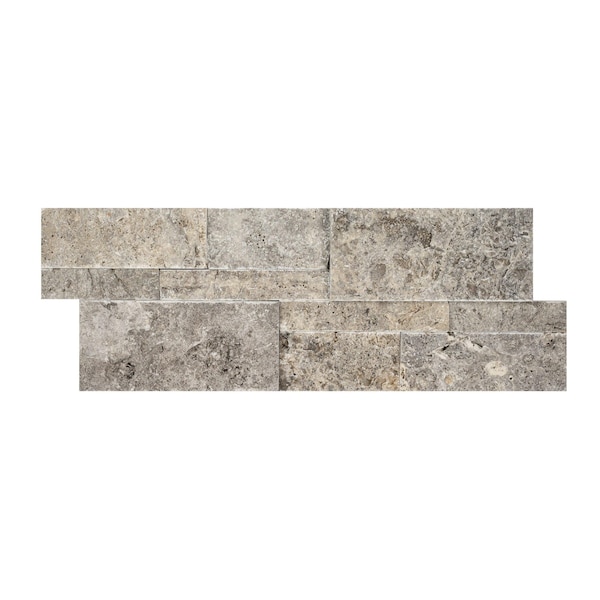 Silver Travertine Splitface Ledger Panel 9'' x 24'' Travertine Wall Tile, 3PK