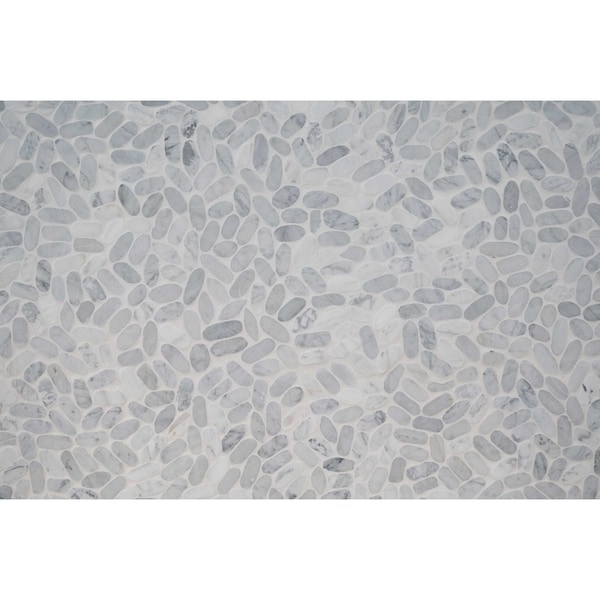 Update your floors, walls, shower surrounds or backsplash with the MSI Sliced Carrara white pebble mosaic tile. this tile is easy to install as it is mesh-backed with a professional finish. this design can fit into many existing decor scenes. these tiles are greenguard indoor air quality certified and offer versatility and beauty whether it's in a residential or commercial property. the neutral color makes it easy to blend in yet stand out. note: inspect all tiles before installation. natural stone products inherently lack uniformity and are subject to variation in color, shade, finish etc. it is recommended to blend tiles from different boxes when installing. natural stones may be characterized by dry seams and pits that are often filled. the filling can work its way out and it may be necessary to refill these voids as part of a normal maintenance procedure. all natural stone products should be sealed with a penetrating sealer.