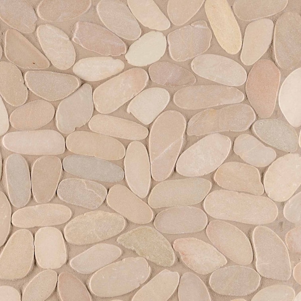 MSI’s Sliced Pebble Earth mosaic is a harmonious blend of cream, beige and brown hues, offered in an enchanting mix of pebble sizes. as comforting and reassuring as earth itself, it's easy to create tranquil ambiance with these warm neutrals. durable and wateresistant, sliced pebble earth is suitable for high traffic areas. use it on walls, floors and countertops - in both homes and commercial properties. in the bath, these natural marble pebbles add texture and warmth underfoot for a zen-like vibe and they're an especially attractive vanity accent tile. note: please inspect all tiles before installation, as natural stone products inherently lack uniformity and are subject to variation in color, shade, finish, etc., so it is recommended to blend tiles from different boxes when installing. natural stones may be characterized by dry seams and pits that are often filled. the filling can work its way out and it may be necessary to refill these voids as part of a normal maintenance procedure. all natural stone products should be sealed with a penetrating sealer.