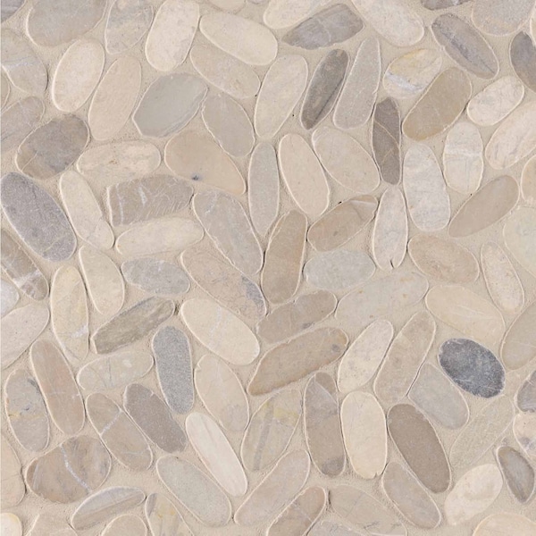 MSI’s Sliced Pebble Truffle mosaic is a beautiful blend of cream, beige, light gray and light brown hues, offered in an enchanting mix of pebble sizes. creating a tranquil ambiance is easy with these warm neutrals. durable and wateresistant, sliced pebble truffle is suitable for high traffic areas. use them on walls, floors and countertops - in both homes and commercial properties. in the bath, these natural marble pebbles add texture and warmth underfoot for a spa-like appeal and they're an especially attractive vanity accent tile. full of possibilities, these tumbled pebbles add interest and dimension to any space. note: please inspect all tiles before installation, as natural stone products inherently lack uniformity and are subject to variation in color, shade, finish, etc., so it is recommended to blend tiles from different boxes when installing. natural stones may be characterized by dry seams and pits that are often filled. the filling can work its way out and it may be necessary to refill these voids as part of a normal maintenance procedure. all natural stone products should be sealed with a penetrating sealer.