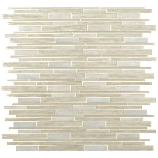 MSI’s Snowcap Blend Interlocking 4 mm glass stone blend mosaic tile strikes the perfect balance between traditional and contemporary with neutral colorways of beige and gray. durable, low-maintenance and highly versatile, there's no better way to give your residential or light use commercial space a touch of timeless luxury. the long, linear look of these tiles visually enlarges even the smallest of spaces, while light reflects of the glass for added interest. it's perfectly suited for a kitchen backsplash, but why stop there; you can also use it on countertops, accent walls, or to give a nook distinct personality. the truth is, wherever you choose to use this gorgeous glass stone blend mosaic, the compliments are sure to follow. tiles are mounted on mesh-backed sheets for a simplified installation that yields a professional look.