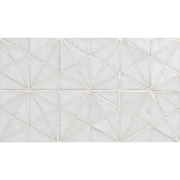 Stella Blanca mosaic tiles from MSI feature shimmering white glass tiles in an eye-catching modern pattern. the tiles complement any design element and color scheme. durable and easy to install, the tiles provide a clean, professional finish. whether used for shower surrounds, kitchen backsplashes, entryways, or other vertical applications in a residential or commercial room, stella blanca will make an impact. the flat face of the tile will be affixed to a brown paper sheet. the uncovered side is the back side of the tile, and contains a cut-cell design for better adhesion to your mortar base.