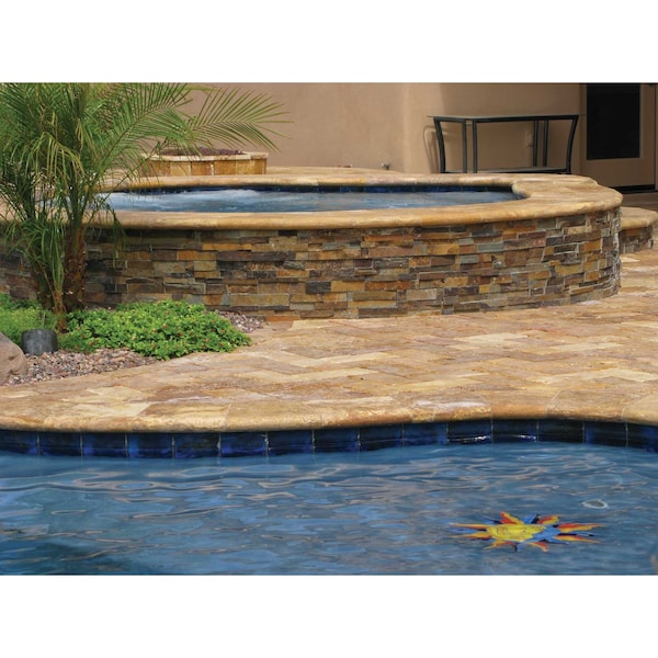 MSI Porcelain Brushed Travertine Pool Copings add a timeless Tuscan beauty for your surroundings, outdoors or doors. Ideal for poolside’s or step treads, these are durable and have various shades of warm creams, and soft salmon tones that create a subtle visual interest With a bullnose on one long side, the tile provides various install options that blend seamlessly to create a perfect setting. NOTE: inInspect all tiles before installation. Natural stone products herently lack uniformity and are subject to variation color, shade, finishing, etc. It is recommended to blend tiles from different boxes when installing. Natural stones may be characterized by dry seams and pits that are often filled. The filling can work its way out and it may be necessary to refill these voids as part of a normal maintenance procedure. All natural stone products should be sealed with a penetrating sealer. After installation, vendor disclaims any liabilities