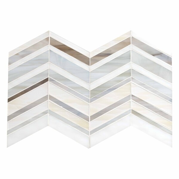 Update your space with urban wave griege mosaic tiles from MSI. a contemporary zig-zag pattern in subtle shades of gray, cream, white and brown adds movement. these glass tiles are perfect for a kitchen backsplash, fireplace wall, bathtub surround, and so much more. durable and easy to install, Urban Wave Griege mosaic tiles provide a professional finish to residential and light commercial applications. the flat face of the tile will be affixed to a transparent mosaic film. the uncovered side is the back side of the tile, and contains a cut-cell design for better adhesion to your mortar base.