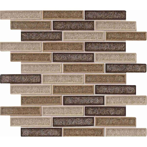 Strike up a new scene with this Venetian Cafe glass mosaic tile. they will make a great backsplash in your kitchen or on the shower wall and even as an accent panel on the countertop surface. these tiles are high-sheen, smooth-finished and measure a seemingly random mix of crackled glass bricks forms this mesh-mounted mosaic, infusing your space with a sharp look and contemporary flair. these tiles can be used indoors or even outdoors on a fireplace facade.