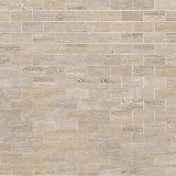 MSI 's Vento Sand polished porcelain floor and wall mesh backed mosaic tile is a vein-cut travertine-look tile featuring gorgeous warm creamy hues for contemporary style. this tile with brikcs in polihsed finish for added elegance and it’s impressively durable and low-maintenance. classic yet on-trend, vento sand is a top choice among homeowners and builders who appreciate its design versatility. use it as flooring, backsplash, shower surround, or for accent walls in residential or commercial settings to create a signature look that endures the ages.