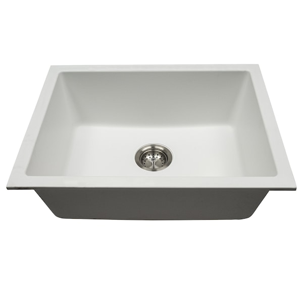 White Single Bowl 24in X 18in Quartz Undermount Kitchen Sink