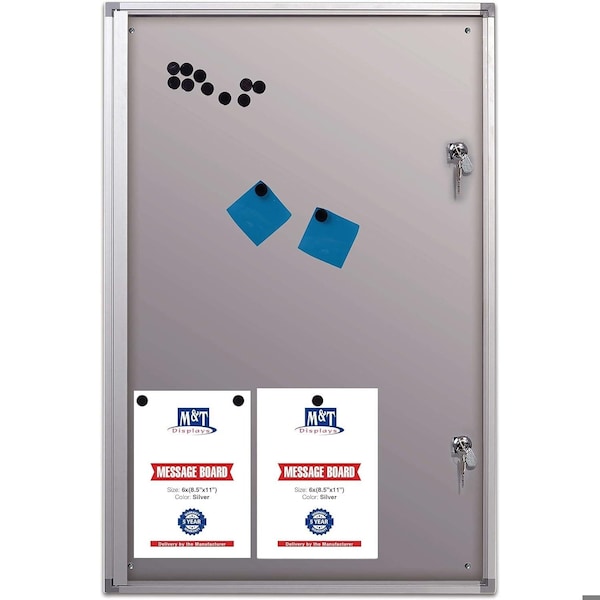 Universal Magnetic Showboard 6x8.5x11 Inch, Aluminum Silver Lockable Noticeboard