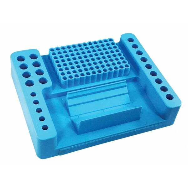 Keep samples cool for up to 5 hours on a benchtop. The CoolCADDY protects enzymes, reagents, and temperature sensitive samples when working with PCR samples. Ideal workstation for PCR protocols requiring multi dispensing of samples. Offers highest level on enzyme protection and is essential for all protocols that require more than 30 minutes of benchtop prep work.Simply prechill the CoolCADDY in freezer overnight and it's ready to use. CADDY holds 5 x 0.5 ml; 9 x 1.5-2.0 ml; 8 x 2.0 ml cryotubes; 1 x 96 well plate or 96 PCR tubes; and 1 x 50 ml reservoir. Maintains 2 - 4°C for up to 5 hoursKeeps samples cool and not frozenHolds vials, tubes, plates and reservoirs