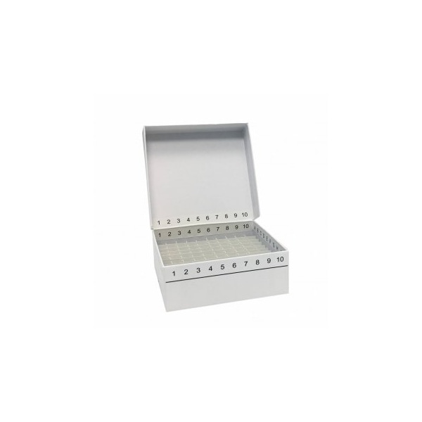 FlipTop Freezer Boxes with hinged lids are manufactured from recycled cardboard and are ideal for freezer and refrigerator use. Boxes contain cardboard cell partition to hold popular size micro-tubes (0.2 and 1.5 - 2.0 ml). Feature liquid resistant outer coating, alpha-numeric identification on top, side and bottom of boxes, including inside lid, grid markings and drain slots. Supplied 5 per case. Hinged lid Standard 5-1/4 x 5-1/2 x 2€ size Convenient