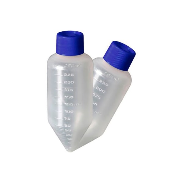 250ml screw-cap polypropylene tubes are manufactured for temperature and chemical resistance. These tubes are intended for large volume centrifugation and are widely used in cell harvesting/purification and drug discovery applications. Mtc bio's 250ml centrifuge tubes can withstand up to 6,000xg maximum rcf*. They are supplied in sterile, rnase, dnase, and pyrogen-free packs of 5 tubes, 70 tubes per case. features: perfect for cell harvesting molded graduations from 0.5 to 250ml sterile, rnase, dnase & pyrogen free leak-proof screw-cap