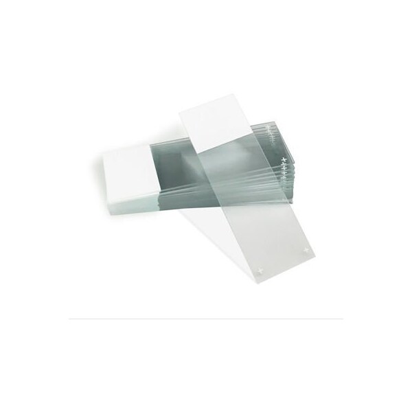 These new slides have a positive charge that makes the surface ideal for cell, tissue and general sample adhesion. Typical samples have a negative charge and are therefore attracted to the positively charged slide surface, significantly reducing float. Slides are made of high clarity glass, 25 x 75mm and are 1.1mm thick compatible with most printers. Frosted marking surface on one end. Packed 72 pieces per plastic box. features: positive charged for cell adhesion frosted on one end 90 cut corners