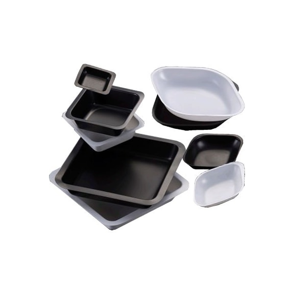 Mtc bio weigh boats are made of antistatic polystyrene and will withstand temperatures to 90c, as well as exposure to diluted acids, alcohols, bases and aqueous solutions. Their flexibility and smooth interior surfaces with rounded corners allow for easy decanting of powdered samples. Their flat bottoms ensure stability and prevent tipping.weigh boats are available in the traditional square shape as well as in a new diamond shape for easier pouring. Originally designed as weighing containers, they have proven ideal for dispensing & storage and as disposable mixing/quick freezing trays. They are available in black or white for improved sample contrast/visibility and packaged in ultra-compact dispenser packs. features: antistatic and biologically inert smooth surface/rounded corners recessed corners; precise pouring wide, flat bottoms - resist tipping for liquids, powders or granular samples
