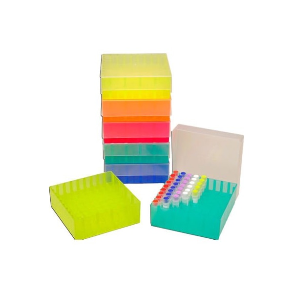Suitable for refrigerator and freezer storage as low as -80c, these boxes have translucent lids and numbered cavities. No. R1060 is the standard 99 format with a friction fit lid. features: polypropylene, withstand -80 compact and space efficient autoclavable