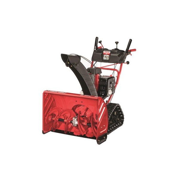 Troy-Bilt 28 2 Stage Gas Snow Thrower 272 cc 4-Cycle Troy OHV Engine Push Button Electric Start Installed Power Steering 28 Clearing Width 20 Intake Height Serrated Auger Design Steel Gears In Cast Aluminum Gear Box Large 12 Impeller 6 Forward/2 Reverse Speeds Single Hand Operation Clutch Lock System Ergonomically Designed Control Panel Overhead 2 Way Remote Pitch Control Extended Chute D-Track Drive System Creates 50% More Ground Contact Providing Added Stability & Traction in Heavy Snow 3 Position Lever Shifts The Machine Weight For Optimum Performance In Dash LED Headlight Heated Handles 3 QT Fuel Tank Capacity Deluxe Reversible Poly Skid Shoes Chute Clearing Device Standard Oil Included In Engine Fully Assembled 3 Year Limited Warranty.