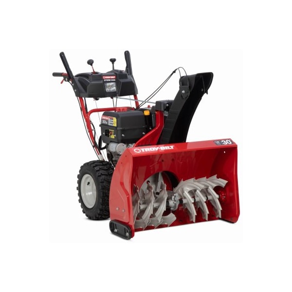 Troy-Bilt 30 2-Stage Gas Snow Thrower 357cc 4-Cycle OHV Engine Push Button Electric Start Installed Trigger Controlled Power Steering 28 Clearing Width 20 Intake Height Serrated Auger Design Steel Gears In Cast Aluminum Gear Box Large 12 Impeller 6 Forward/2 Reverse Speeds Single Hand Operation Clutch Lock System Ergonomically Designed Control Panel Extended Polymer Chute With Remote Pitch Control 16 x 6.5 X-Trac Tires In Dash LED Headlight 3 QT Fuel Tank Capacity Deluxe Reversible Poly Skid Shoes Chute Clearing Device Standard Oil Included In Engine Fully Assembled 3 Year Limited Warranty.