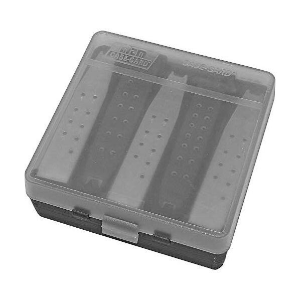 MTMs Pistol Magazine Case offers compact protection for up to 5 standard doublestack magazines in an easy to view, stackable container ClearSmoke so you can see whats inside without opening Keeps up to 5 doublestack magazines protected during transport Ideal size for a well appointed Bug Out Bag Excellent gun safe storage MTM PMC5 026057100555