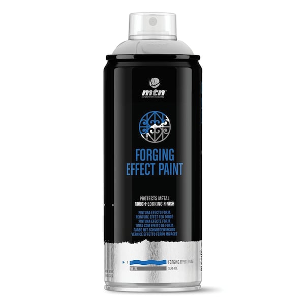 MTN PRO Forging Effect Spray Paint contains metallic particles with a rough finish that results in a ferrous look. This paint is a solvent-based acrylic spray paint that gives a rough finish thanks to its natural, micaceous iron oxide particles. Apart from the ferrous look, this synthetic enamel has anticorrosive properties as well. Due to the characteristics of this product we recommend using it for touch-ups on all types of industrial, domestic, handicraft and fine arts materials, or for any job where the properties of high-quality spray paint are required. However, its finish is ideal on structural steel; gates, metal fences, welded joints, street lamps, fountains and all types of urban furniture.