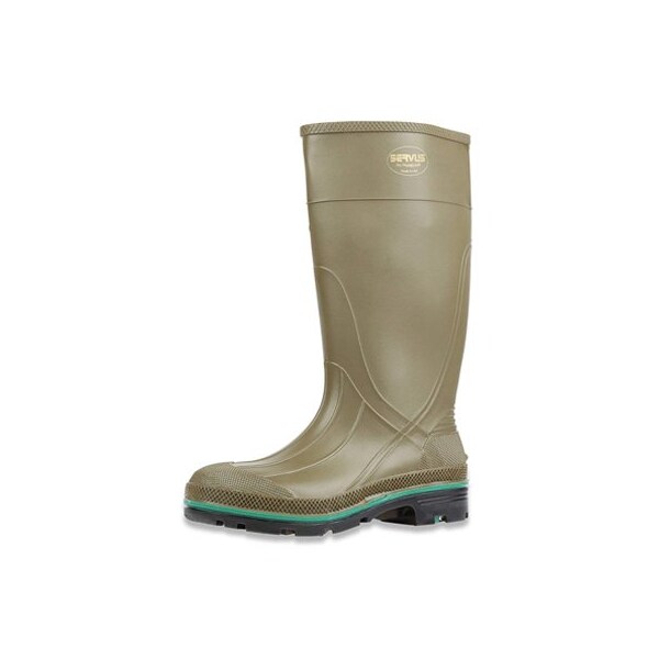 Size 4, Olive, Servus Max, Seamless, Rubber Boots, TDT Technology, Injection Molded, 100 Waterproof To Ensure Workers Feet Are Dry Comfortable, Outsole Perimeter Is Formulated For Tough, Long Wearing Support, Centersole Is Dual Compounded For Cushioning, Long Wear Traction On Slick Surfaces, Steel Shank Is Longer, Wider Thicker For Outstanding Arch Support, Removable Foot Form Contour Cushion Insoles Provide All Day Comfort Support, Open Pattern Outsole Design Self Cleans Liquid Debris With Every Step, Helping To Prevent Slip Trip Hazards