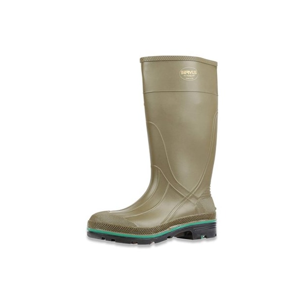 Size 9, Olive, Servus Max, Seamless, Rubber Boots, TDT Technology, Injection Molded, 100 Waterproof To Ensure Workers Feet Are Dry Comfortable, Outsole Perimeter Is Formulated For Tough, Long Wearing Support, Centersole Is Dual Compounded For Cushioning, Long Wear Traction On Slick Surfaces, Steel Shank Is Longer, Wider Thicker For Outstanding Arch Support, Removable Foot Form Contour Cushion Insoles Provide All Day Comfort Support, Open Pattern Outsole Design Self Cleans Liquid Debris With Every Step, Helping To Prevent Slip Trip Hazards