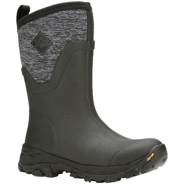 Women's Arctic Ice Mid Rubber Boot, Plain Toe, 12" Height, Black, 8