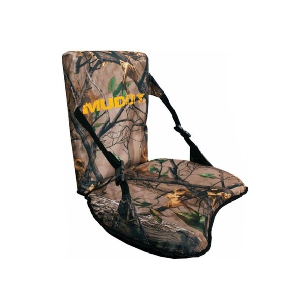 Use this dynamic Muddy with slanted cushion at ground level for turkey hunting, atop a 5 gallon-pail, or as a replacement seat for many Muddy Treestands. You can even take it to your favorite sporting event for viewing comfort. It has two one-inch web straps with buckles to support the backrest as a freestanding seat or to secure backrest to a tree. Features a cushion that has 3” thick foam in front and 2” thick in rear and measures in at 18” x 14”.
