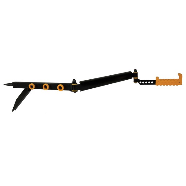 The Muddy is designed for easy use and storage in and out of the field. Constructed of solid steel, the includes a leg grip for extra strength and the ability to fold flat for easy storage and packability. It is easily installed with a screw-in steel tip. Gear hooks include an 11” 2-way adjustable arm extension that rotates 270 degrees, a 6” non-slip grip rubber-coated hook that rotates 360 degrees, and three separate knobs for extra gear. The extends 25.25” and folds down to 11.25” for storage. Weight rated at 30 lbs.