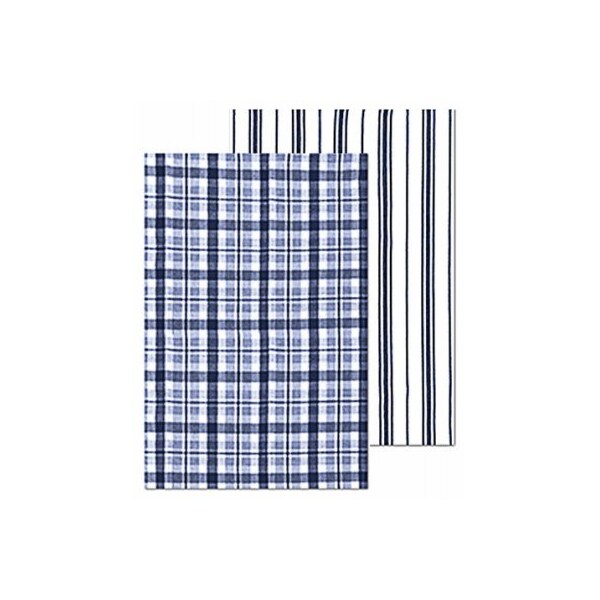 2 Pack, 19 x 28, Ink Blue, Farmhouse Towel Set, 100 Cotton, Includes Coordinating Plaid Stripe Towels, Hemmed All Around For Durability A Hanging Loop For Convenience, Classic Plaids Stripes Are A Great Look In Any Kitchen, Durable Easy Care Makes Them Perfect For All Your Clean Up Needs