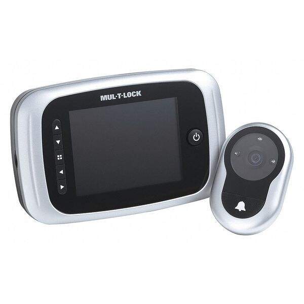 Electronic Door Viewer, Color Aluminum, Height 3-13/32 In., Width 5 5/16 in, Depth 1 in, Barrel Dia. 9/16 in, Door Thickness 1 3/4 in to 2 3/4 in, Display 3 1/2 in Color LCD, Power Supply (4) AA Batteries, Includes Built-In Door Bell, 0.3 MP Digital Camera, 2GB SD Card, Day/Night Capable Day/Night, Operating Temp. Range 10 Degrees to 110 Degrees F