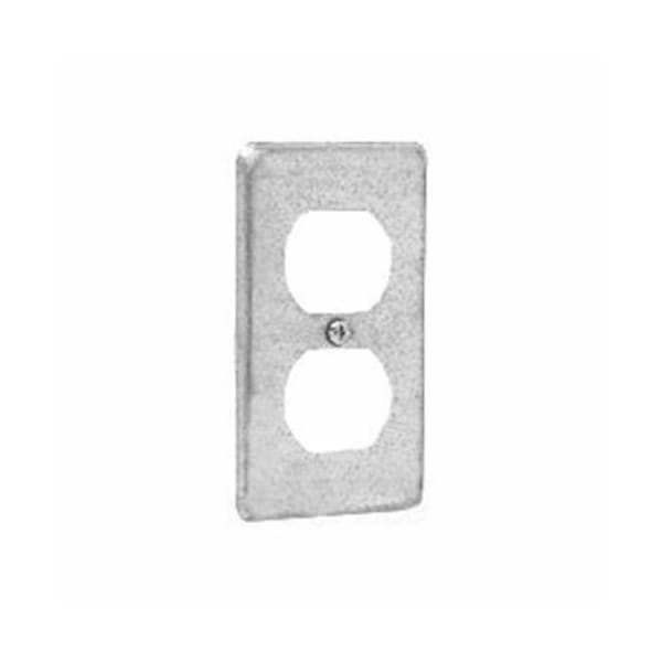 Box Cover, 2 Gang, Galvanized Steel, Duplex Receptacle Cover Type