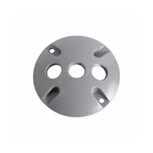 Mulberry; Electrical Box Cover; Material: Heavy Duty Die Cast Zinc; Finish: Powder Coated; Shape: Round; Size: 4 IN; Number Of Outlet: (3) 1/2 IN Tapped Hole; Color: Gray