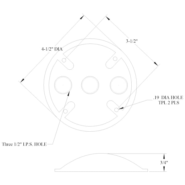 Mulberry; Cover; Material: Heavy Duty Die Cast Zinc; Finish: Powder Coated; Shape: Round; Size: 4 IN Diameter; Number Of Outlet: 3; Color: Black; Configurations: Three Tapped Hole (1/2 IN)