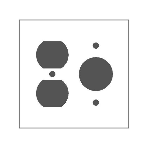 Wallplate, 1.405IN ID Hole, Application: Commercial, Standard: UL 883, Size: 4.562 X 4.5IN, Number of Gangs: 2, Cutout: (1) Duplex Receptacle, (1) Single Receptacle, Material: Cold Rolled Steel, Thickness: 0.03IN, Color: Semi Gloss Gray