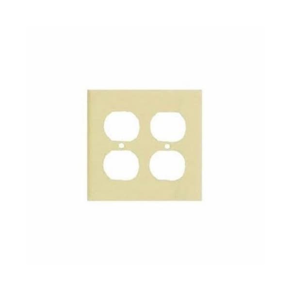 Wallplate, Standard: UL 883, Size: 4.562 X 4.5IN, Number of Gangs: 2, Cutout: (2) Duplex Receptacle, Material: Steel, Thickness: 0.03In, Color: Wrinkle Ivory