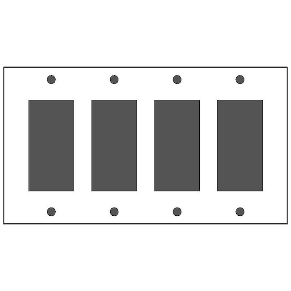 Wallplate, Application: Commercial, Standard: UL 883, Size: 8.187 X 4.5IN, Number of Gangs: 4, Cutout: (4) Block Duplex/GFI Receptacle, Material: Cold Rolled Steel, Thickness: 0.03IN, Color: Semi Gloss Gray