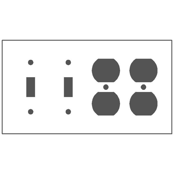 Wallplate, Standard: UL 883, Size: 8.187 X 4.5IN, Number of Gangs: 4, Cutout: (2) Toggle Switch, (2) Duplex Receptacle, Material: Steel, Thickness: 0.03In, Color: Semi Gloss White