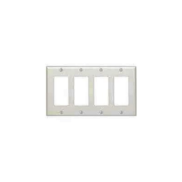 Wallplate, Standard: UL 883, Size: 8.187 X 4.5IN, Number of Gangs: 4, Cutout: (4) Block Duplex/GFI Receptacle, Material: Steel, Thickness: 0.03In, Color: Semi Gloss White