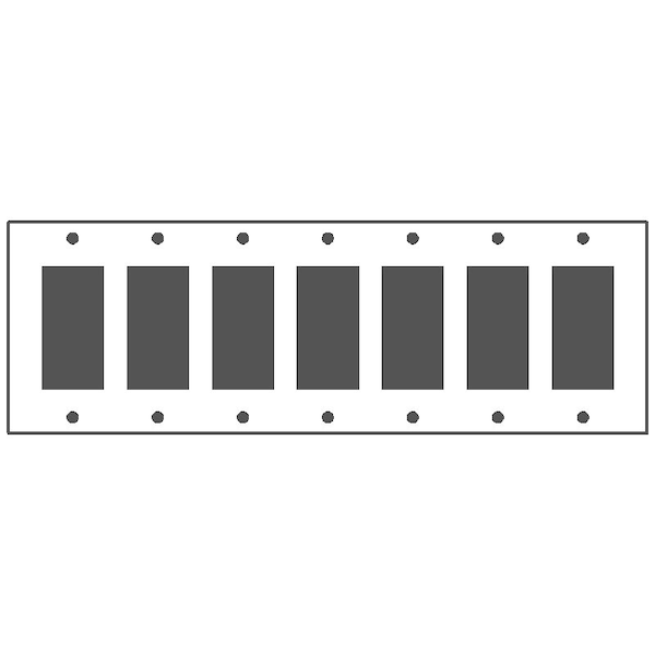 Wallplate, Standard: UL 883, Size: 13.625 X 4.5IN, Number of Gangs: 7, Cutout: (7) Block Duplex/GFI Receptacle, Material: Steel, Thickness: 0.03In, Color: Semi Gloss White