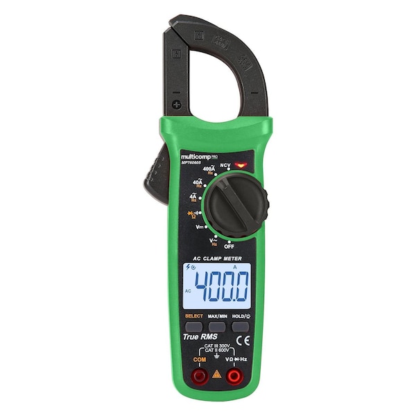 Clamp Meter, AC Current, AC/DC Voltage, Continuity, Diode, Resistance, 400 A, 600 V, 600 V