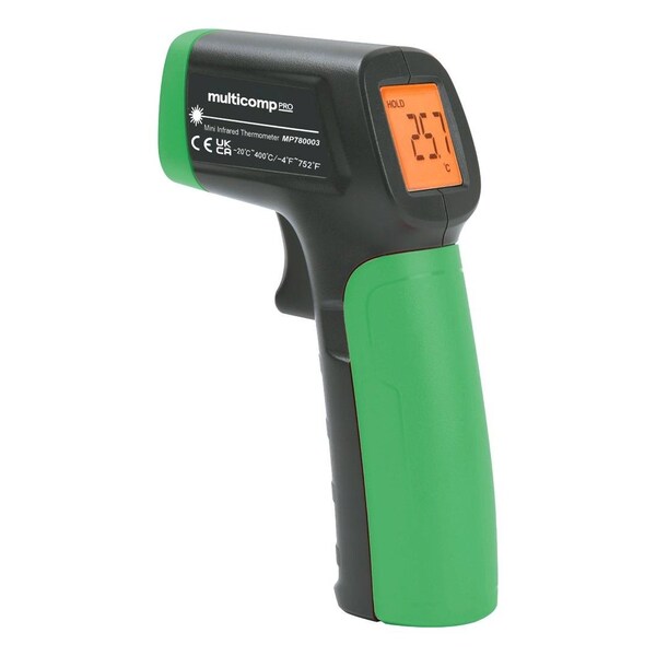 The MP780003 from Multicomp Pro is a miniature infrared thermometer, capable of temperature measurements between -20°C and +400°C -4°F to 752°F with an accuracy of ±2%.