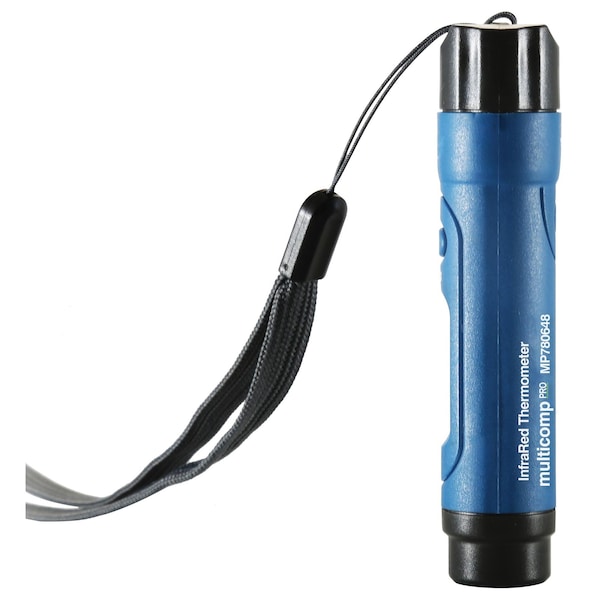 The Multicomp Pro MP780648 is a miniature pocket sized IR thermometer offering precise, non-contact temperature measurements. The distance to target ratio or optics ratio is 1:1, therefore the thermometer should be positioned as close to the target as possible when measuring. This device can be used in a wide range of applications and environments, such as food preparation, safety inspection, plastic moulding, asphault, marine and screen printing, HVAC/R, diesel and fleet maintenance.