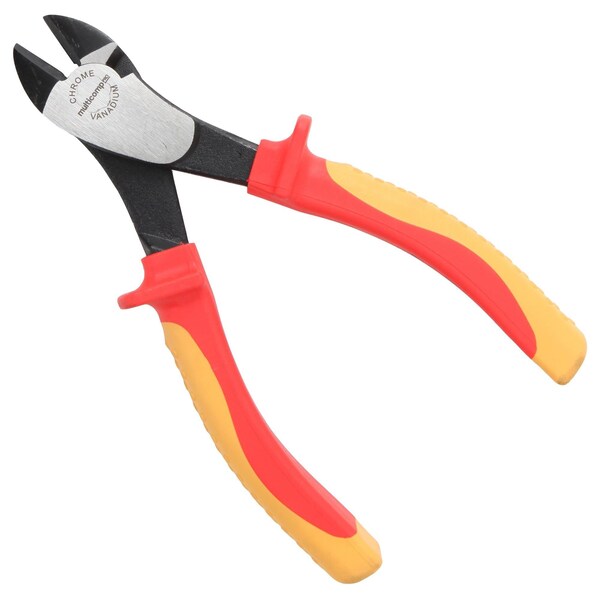 Pliers, Diagonal, 7in. Length, Chrome Vanadium, Thermoplastic Rubber Handle, 1000V, VDE