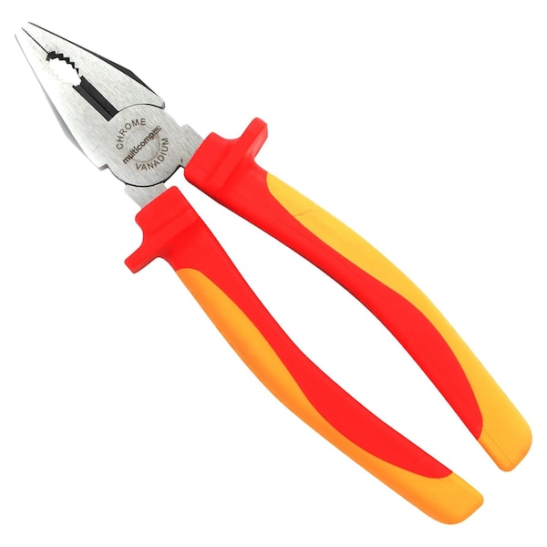 Pliers, Insulated Combination, 8in. Length, Chrome Vanadium, Thermoplastic Rubber Handle