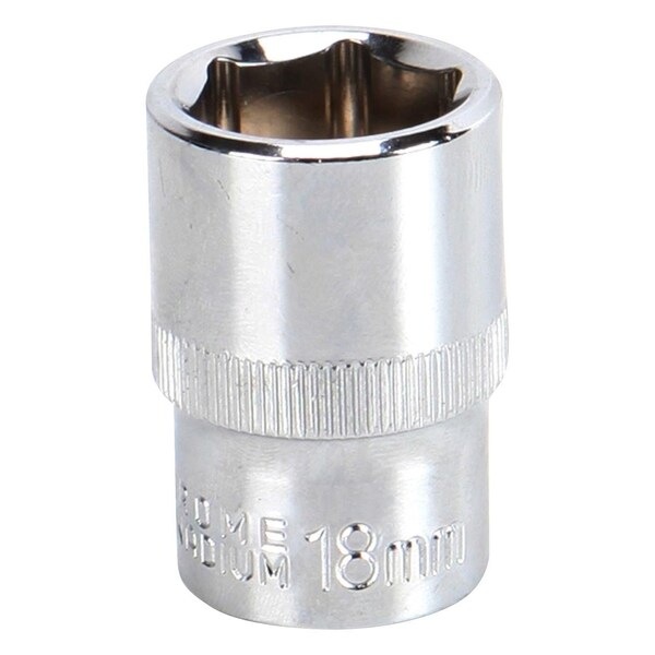 Socket, Hex, 18mm, 1/2in. Drive Size, Chrome Vanadium, DIN3120