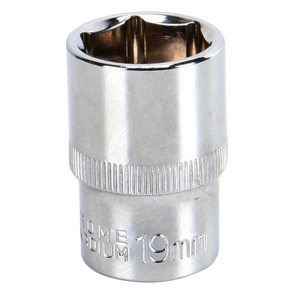 Socket, Hex, 19mm, 1/2in. Drive Size, Chrome Vanadium, DIN3120