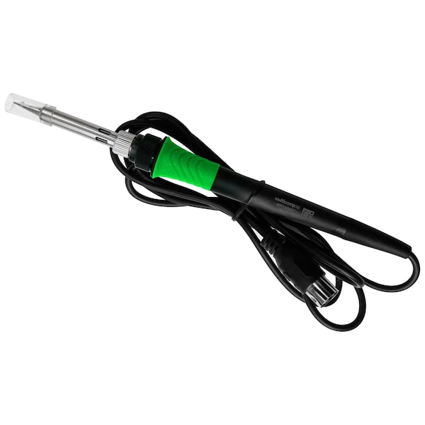 MP740687 from Multicomp Pro is a 65W Soldering Iron which is perfect for use with a main unit of soldering station MP740686. Lightweight and ergonomically handle with anti- slipping safety feature allows easily to carry out soldering works such as repairing electronic components. Changeable soldering iron tip allows to perform different tasks from disordering of SMD semiconductors to assembling through-hole elements. The ability to replace the heating element MP740687 extends the life span of the unit.