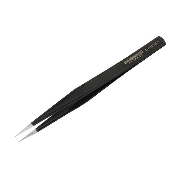 The D00835 is a 130mm black type-AA.SA Straight Fine Tweezers made of anti-magnetic anti-acid stainless steel with ESD polyester epoxy coating. Specifically intended for a smooth handling and positioning of most SMD components.