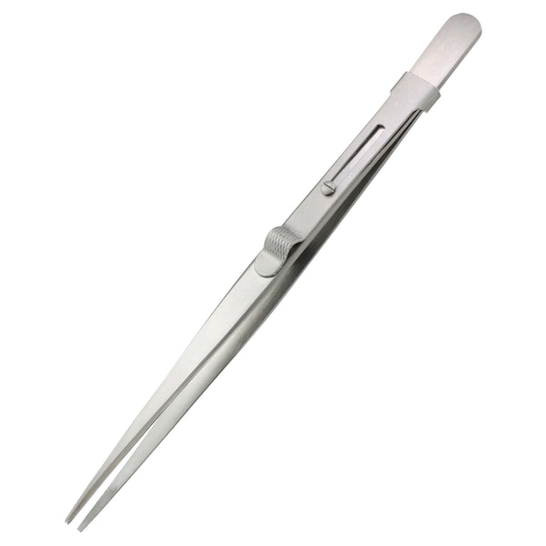 Tweezers, Locking, Straight, Flat, 6.29in. Overall Length, Stainless Steel